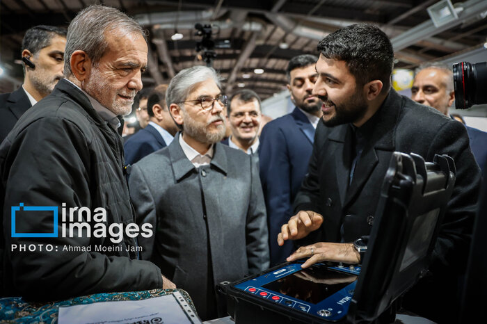 همزمان با افتتاحیه دوازدهمین نمایشگاه تجهیزات، مواد آزمایشگاهی و آزمون و پیشرفته «ایران ساخت» همچنین بیست‌وپنجمین دوره نمایشگاه دستاوردهای پژوهش، فناوری و فن‌بازار و ششمین دوره نمایشگاه تستا، مسعود پزشکیان، ظهر امروز در این نمایشگاه حاضر شد و ابتدا از سالن خلیج فارس محل برپایی دوازدهمین نمایشگاه ایران‌ساخت بازدید کرد.