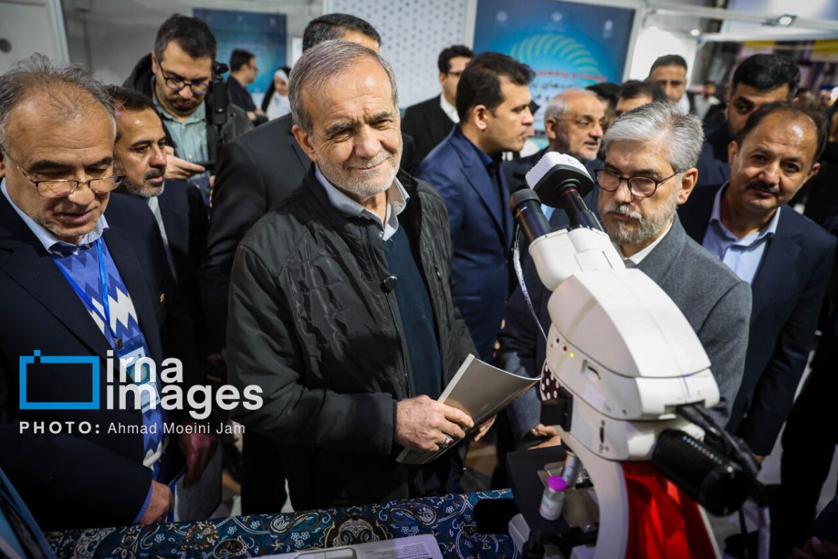 همزمان با افتتاحیه دوازدهمین نمایشگاه تجهیزات، مواد آزمایشگاهی و آزمون و پیشرفته «ایران ساخت» همچنین بیست‌وپنجمین دوره نمایشگاه دستاوردهای پژوهش، فناوری و فن‌بازار و ششمین دوره نمایشگاه تستا، مسعود پزشکیان، ظهر امروز در این نمایشگاه حاضر شد و ابتدا از سالن خلیج فارس محل برپایی دوازدهمین نمایشگاه ایران‌ساخت بازدید کرد.