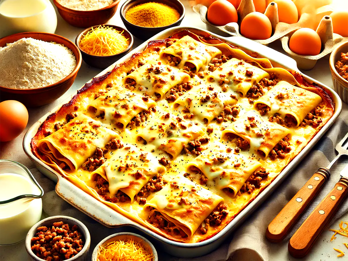 در این مرحله، کرپ‌های آماده شده را داخل یک ظرف فر مناسب قرار می‌دهیم. یک لایه کرپ کف ظرف می‌گذاریم، مقداری از مواد گوشتی را روی آن می‌ریزیم و کمی پنیر پیتزا رنده شده روی مواد می‌پاشیم. سپس لایه بعدی کرپ را می‌گذاریم و مجدداً مواد گوشتی و پنیر اضافه می‌کنیم. این مراحل را تا زمانی که مواد تمام شوند ادامه می‌دهیم.