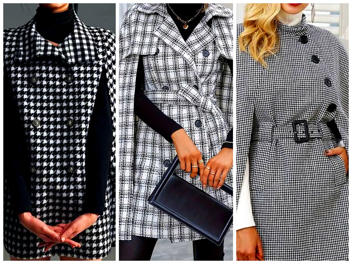 ۱۵ مدل شنل چارخونه ریز سفید مشکی؛ پوششی که هیچ وقت از مد نمیافتد