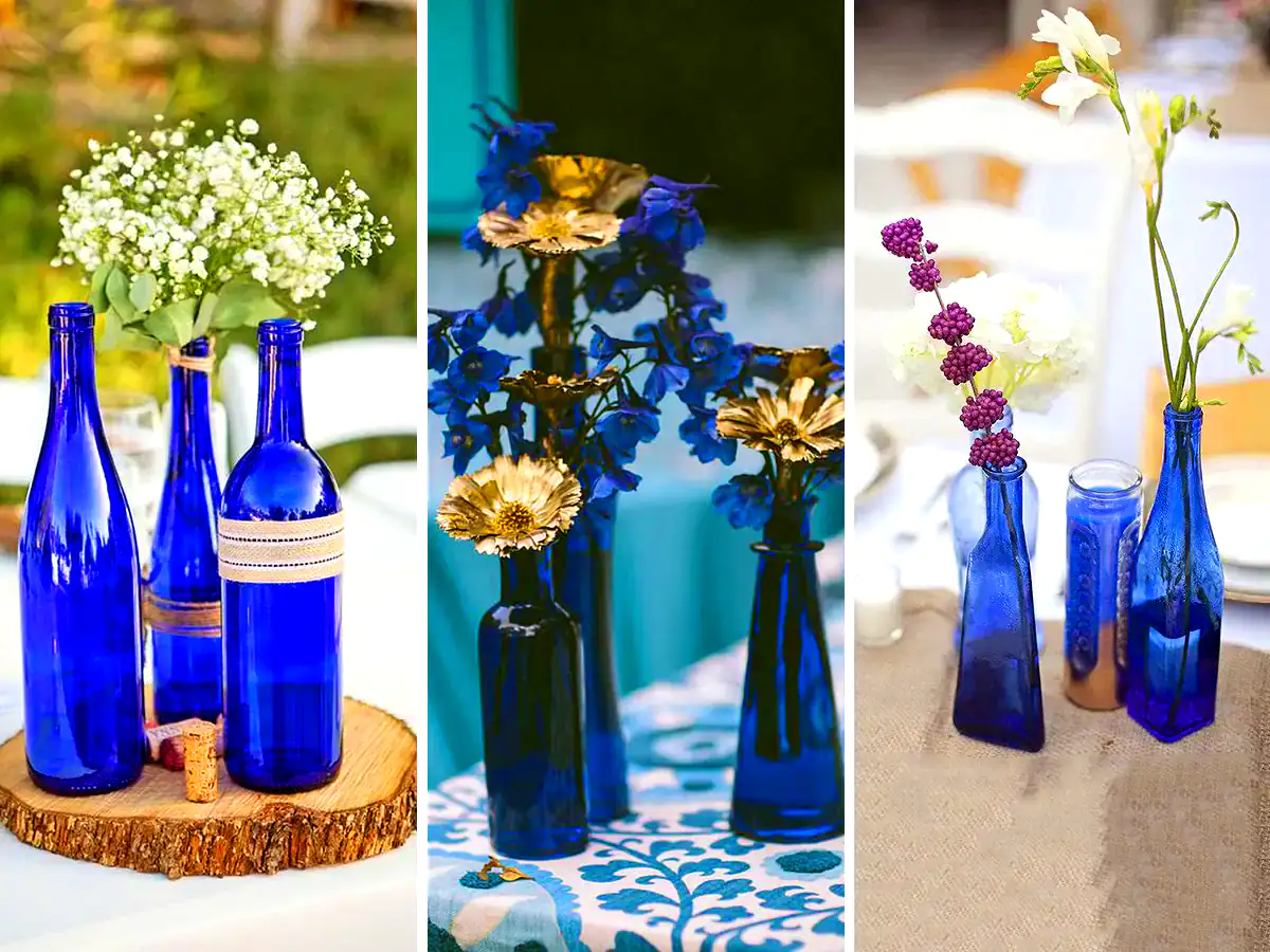 استفاده از گلدان شیشه‌ای آبی در کنار گل‌های طبیعی هم ترکیب زیبایی می‌سازد. گل‌های سفید یا رنگارنگ در این گلدان‌ها بیشتر به چشم می‌آیند و هماهنگی جالبی بین طبیعت و دکوراسیون ایجاد می‌شود. حتی اگر گل طبیعی نداشته باشید، این گلدان‌ها به تنهایی هم زیبا هستند.